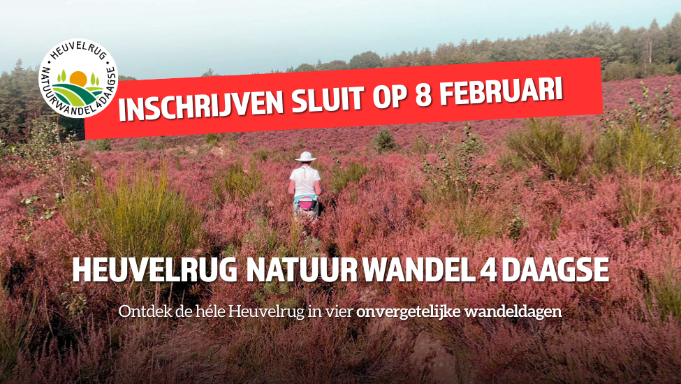 De initiatiefnemer: “Je mag over de Heuvelrug Natuurwandel4daagse wel een heel jaar doen; maar vanwege de productietijd voor de boekjes is er wel een uiterste inschrijfdatum. Die is dit jaar vastgesteld op 8 februari 2026. De beschikbaarheid is ‘zolang de voorraad strekt’. Dus wil je zeker zijn van deelname in 2026, dan is het verstandig om vóór die datum in te schrijven. Daarna kan het zomaar zijn dat je "achter het net vist.”